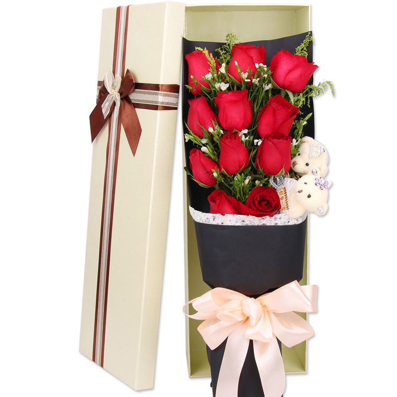 • 紅玫瑰11枝,滿天星、綠葉豐滿+8寸奶油蛋糕